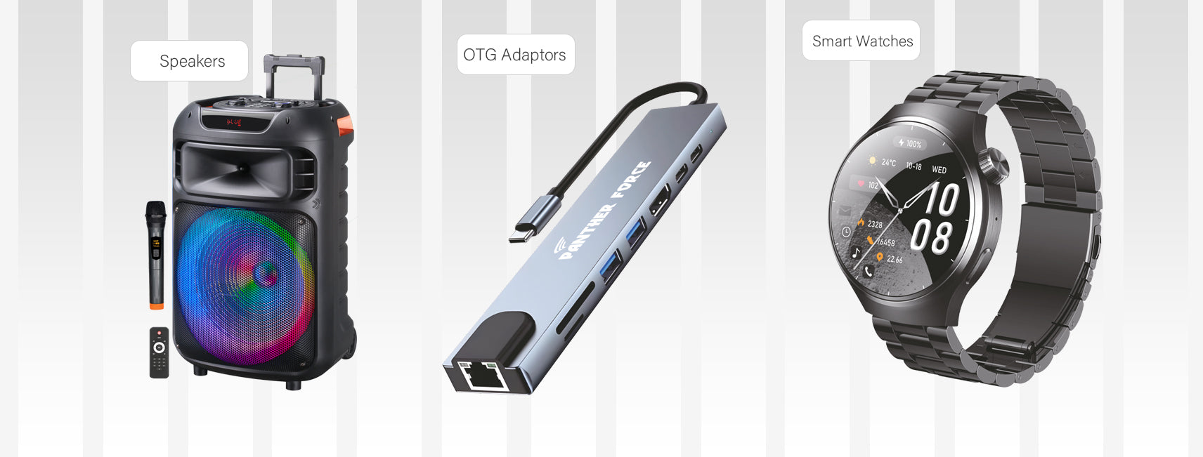 The Bluetooth speaker is awesome—clear sound, strong bass, and a stylish design. Easily portable and battery lasts long.