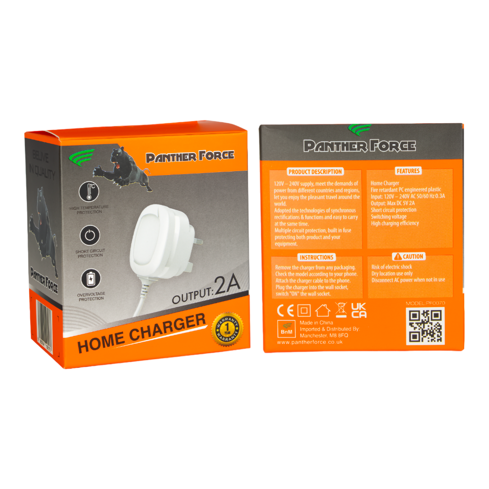Compact & Portable: With its sleek and lightweight design, the Panther Force 2AMP Main Charger is easy to carry and perfect for travel. Slip it into your bag or pocket and take it with you wherever you go.